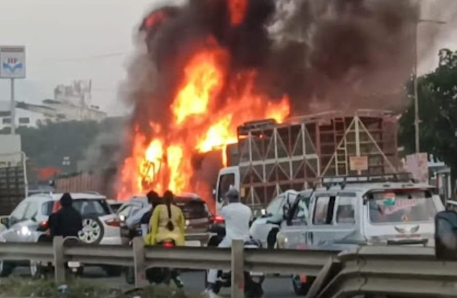 पुणे दि. 14 : पुण्यात कात्रजच्या बोगद्याजवळ मालवाहू ट्रकचे नियंत्रण सुटल्याने आठ ते दहा वाहनांना धडक बसली. नियंत्रण सुटलेल्या या ट्रकने एका कारला जोरदार धडक देत ती बराच अंतर फरफटत नेली आणि पुढील ट्रकवर जाऊन आदळला. दोन ट्रकांच्या मधोमध अडकल्याने कार पूर्णपणे चिरडली गेली आणि काही क्षणांतच स्फोटासह पेट घेऊन जळून खाक झाली.