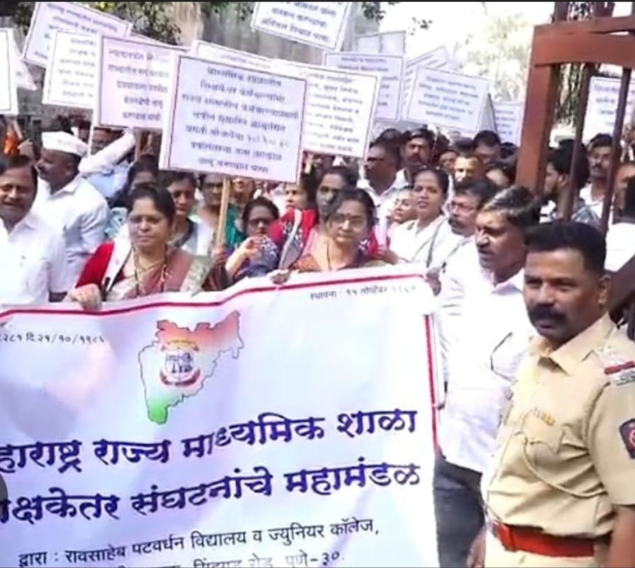 पुणे दि.18 : तब्बल 20 वर्षांच्या सातत्यपूर्ण संघर्षानंतर शासनाला शिक्षकेतर कर्मचारी भरतीचा अध्यादेश काढण्यास भाग पाडल्यानंतरही भरती प्रक्रिया अद्याप सुरू न झाल्याने राज्यातील शिक्षकेतर कर्मचारी आक्रमक झाले आहेत. विविध प्रलंबित मागण्यांसाठी महाराष्ट्र राज्य माध्यमिक शाळा शिक्षकेतर संघटना महामंडळातर्फे सोमवार, शनिवार वाडा ते शिक्षण आयुक्त कार्यालय असा भव्य मोर्चा काढण्यात आला.