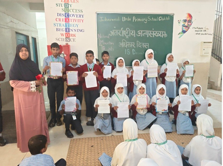 पुणे, दि. २२ : जिल्ह्यातील पुणे, पिंपरी-चिंचवड महानगरपालिका तसेच ग्रामीण भागातील उर्दू माध्यमांच्या शाळांमध्ये १८ डिसेंबर २०२५ रोजी अल्पसंख्याक हक्क दिन उत्साहात साजरा करण्यात आला.पुणे महानगरपालिकेअंतर्गत शिक्षण हक्क मंचचे संस्थापक अध्यक्ष मतीनभाई मुजावर यांच्या पुढाकाराने माध्यमिक शिक्षण विभागातील उर्दू माध्यमाच्या सर्व शाळांना एकत्र करून हा उपक्रम राबविण्यात आला.