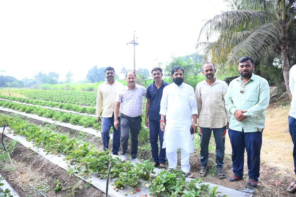 या भेटीदरम्यान मंत्री गोगावले यांनी स्ट्रॉबेरी लागवडीची पद्धत, रोपवाटिका व्यवस्थापन, उत्पादन क्षमता, बाजारपेठ, खर्च–उत्पन्नाचे गणित तसेच शेतकऱ्यांना भेडसावणाऱ्या अडचणींबाबत सविस्तर माहिती घेतली. स्ट्रॉबेरीसारखी उच्च मूल्य पिके शेतकऱ्यांचे उत्पन्न वाढविण्यासाठी अत्यंत उपयुक्त असल्याचे त्यांनी नमूद केले.