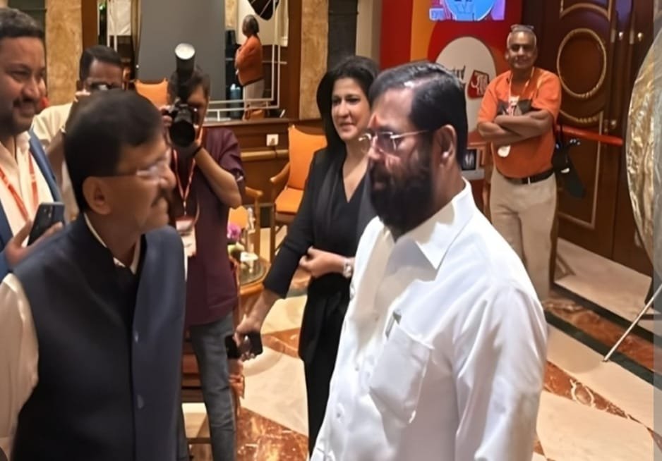 मुंबई, दि. ८ : मुंबईत एका खाजगी वृत्तवाहिनीच्या ‘मुंबई मंथन’ या कार्यक्रमादरम्यान उपमुख्यमंत्री एकनाथ शिंदे आणि शिवसेना (उद्धव बाळासाहेब ठाकरे गट) खासदार संजय राऊत यांची अचानक भेट झाल्याने राजकीय वर्तुळात चर्चांना उधाण आले आहे. मुंबईतील एका हॉटेलमध्ये आयोजित या कार्यक्रमात शिंदे यांची मुलाखत संपून ते बाहेर पडत असतानाच, संजय राऊत मुलाखतीसाठी स्टुडिओकडे जात होते. यावेळी दोघेही समोरासमोर आले.
